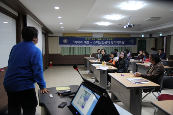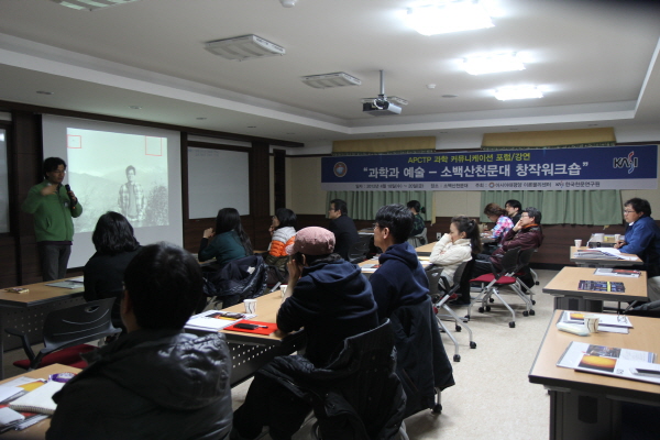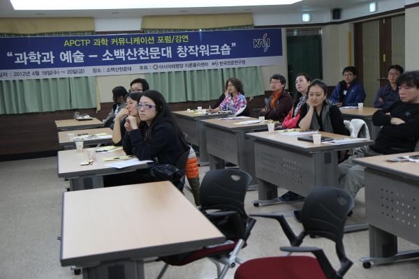 ◦ 행 사 명 : APCTP 과학커뮤니케이션 포럼/강연 ◦ 주 제 : 과학과 예술 - 소백산천문대 창작워크숍 ◦ 일 시 : 2012년 4월 18일(수) ~ 20일(금) [2박 3일간] ◦ 장 소 : 소백산천문대 ◦ 주 최 : 아시아태평양 이론물리센터, 한국천문연구원 ◦ 주 관 : 아시아태평양 이론물리센터 ◦ 주요 프로그램