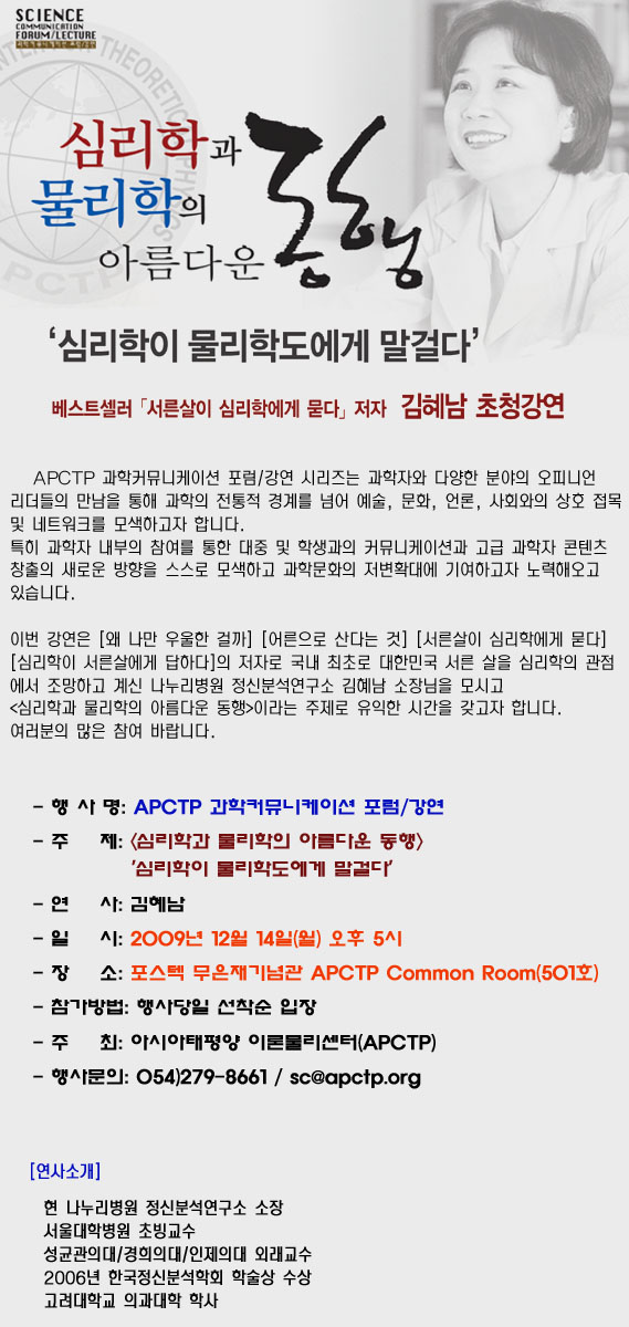 | PLACE | 포스텍 무은재 기념관 501호 (APCTP Headquarters) | |