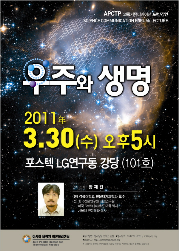 우주생물학은 우주진화의 관점에서 우주에 존재하는 생명의 분포, 기원, 진화의 가능성을 알아보고, 이를 근거로 생명에 대한 이해를 구하려 합니다. 우주생물학은 대상이 되는 생명이 외계에서는 아직 발견되었다고 보기 어려운 상황이지만 이 주제와 관련되어 최근 천문학, 생물학, 그 밖의 여러 분야에서 다양한 모색이 이루어지고 있습니다. 우주적 전망에서 생명현상을 살펴봄으로써 결국 지구에서 일어난 생명현상에 대한 이해와 지구생명의 가능한 미래, 그리고 지금 우리가 처한 상황을 성찰하는 주제를 다루게 됩니다. 본 강연에서는 “우주와 생명에 대한 전망”을 해보는 시간이 마련되어져 있습니다.