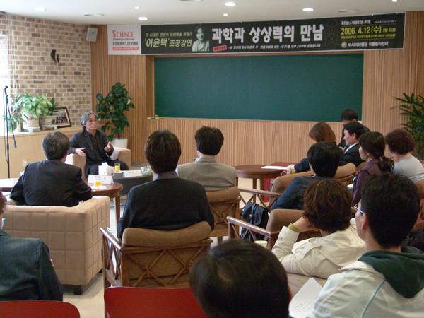 특히 과학자 내부의 참여를 통한 대중 및 학생과의 커뮤니케이션과 고급과학컨텐츠 창출의 새로운 방향을 스스로 모색하고 과학문화의 저변확대에도 기여하고자 노력해오고 있습니다. 올해 첫 모임은 문화예술계의 거인 `이윤택' 선생을 모시고, 과학과 상상력의 만남이라는 주제로 유익한 시간을 가지고자 합니다.