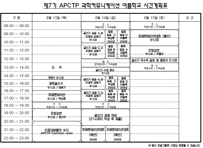 | Subject | 제7기 APCTP 과학커뮤니케이션 여름학교 (7th APCTP Science Communication Summer School) | |