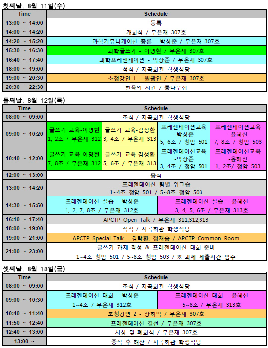 | Subject | 제9기 APCTP 과학커뮤니케이션 여름학교 (9th APCTP Science Communication Summer School) | |