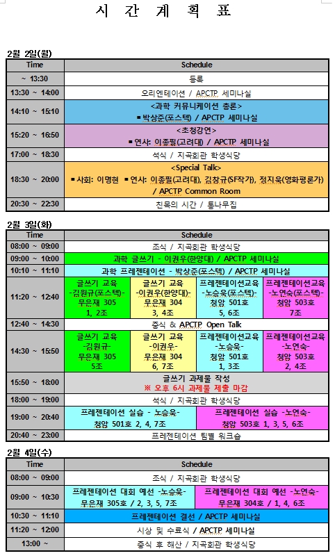 | PLACE | APCTP 포항본부 (APCTP Headquarters, Pohang) | |