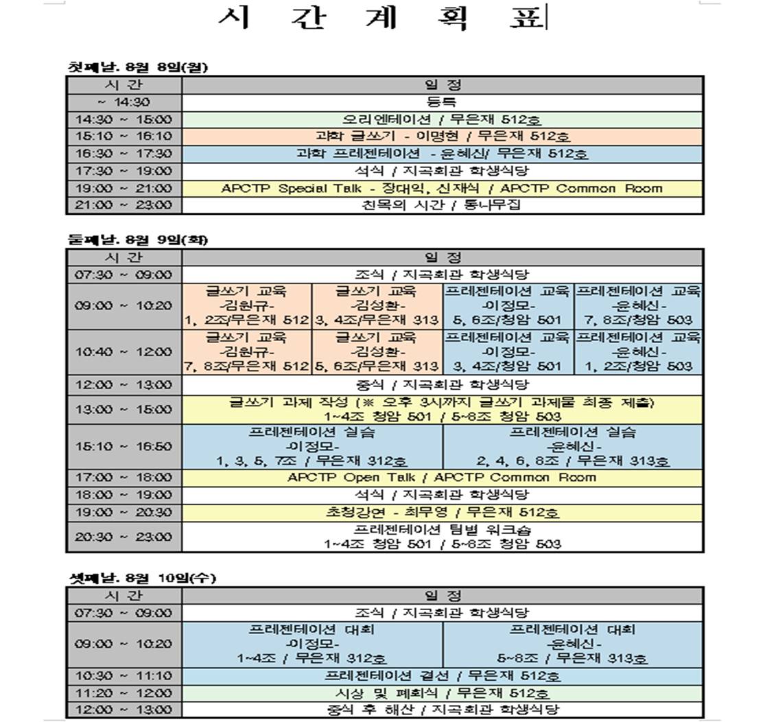 | Subject | 제10기 APCTP 과학커뮤니케이션 여름학교 (10th APCTP Science Communication Summer School) | |