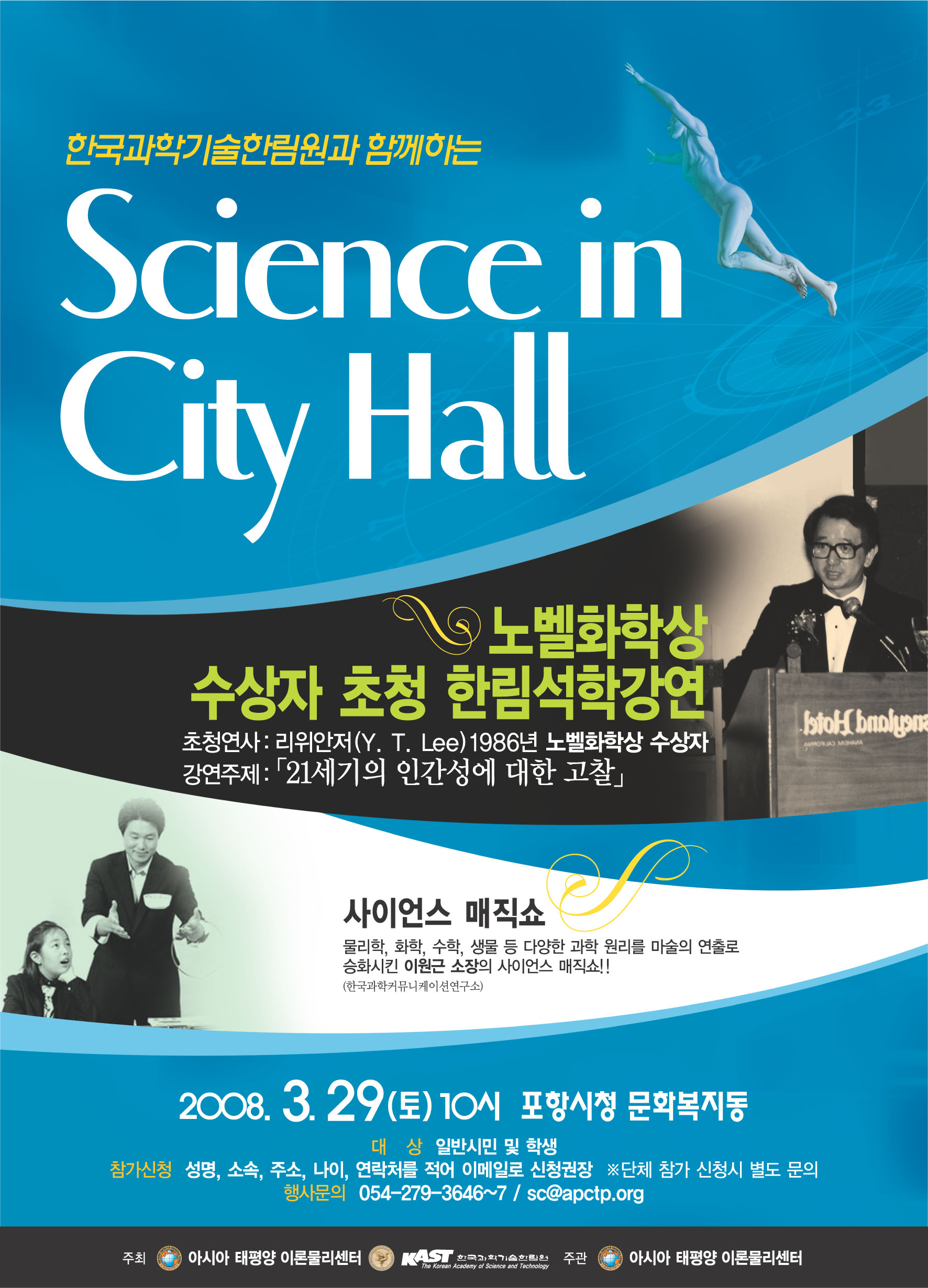 | Subject | 노벨화학상 수상자 초청강연 & 사이언스 매직 쇼 (Science in City Hall) | |