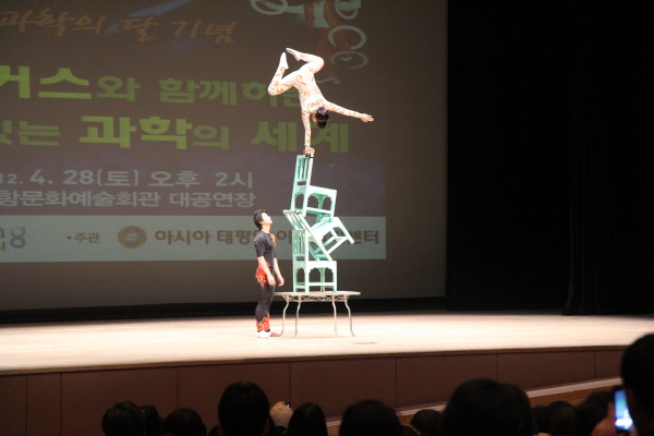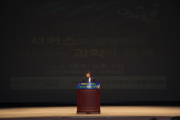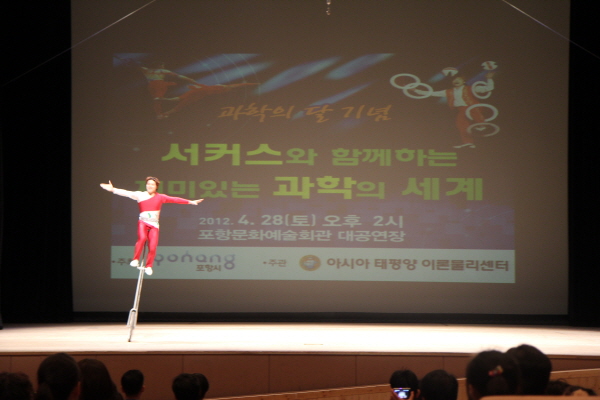 ◦ 행사명 : Science in City Hall Ⅷ - 서커스와 함께하는 재미있는 과학의 세계 ◦ 일 시 : 2012년 4월 28일(토) 오후 2시 ◦ 장 소 : 포항문화예술회관 대공연장 ◦ 대 상 : 학생 및 일반시민 ◦ 주 최 : 포항시 ◦ 주 관 : 아시아태평양 이론물리센터 ◦ 행사내용 Ⅰ. 과학강연 ‘과학이 어려워요 ㅠㅠ’ - 카이스트 정하웅 교수 Ⅱ. 과학공연 ‘동춘서커스와 함께하는 과학이야기'