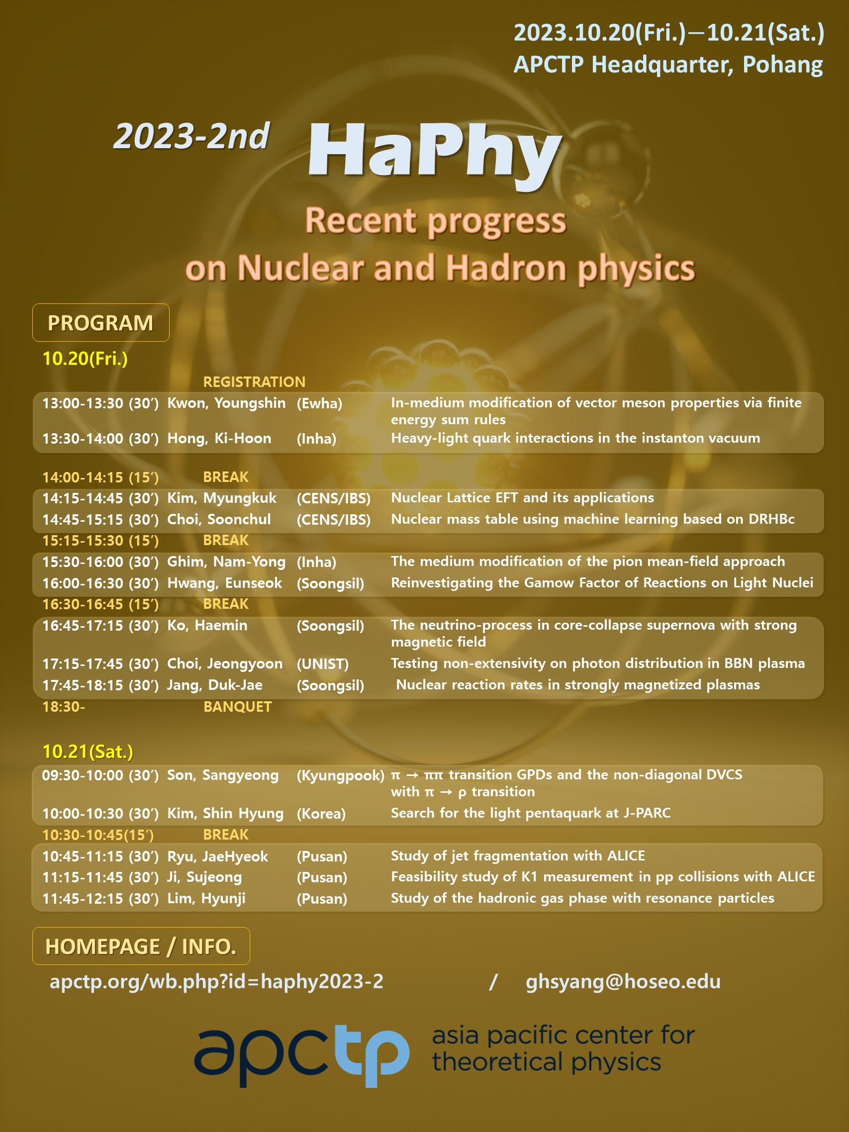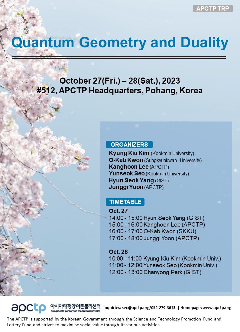 PlaceAPCTP HQ, Pohang - Offline and online via Zoom