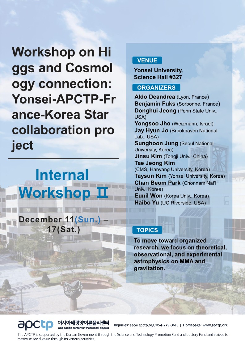 Workshop on Higgs and Cosmology connection: Yonsei-APCTP-France-Korea Star collaboration project