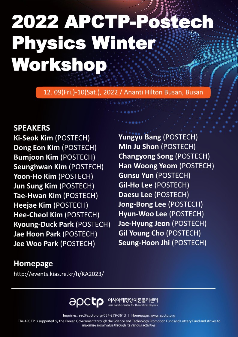 The 20th KIAS-APCTP Winter School on Statistical Physics