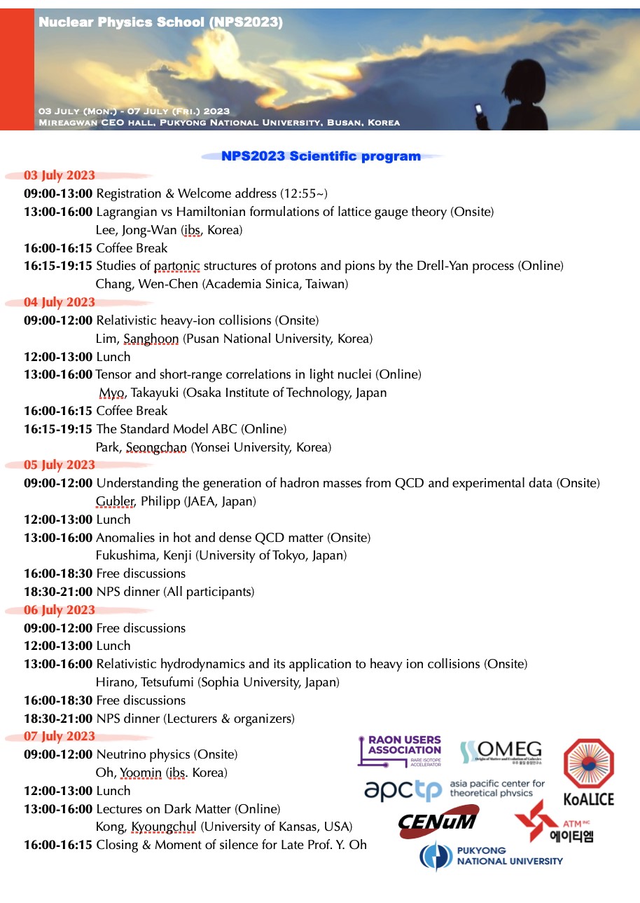 09:00-12:00 Relativistic heavy-ion collisions (Onsite) l Lim, Sanghoon (Pusan National University, Korea)