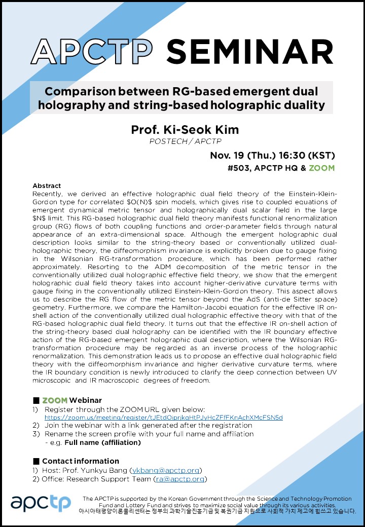 | Place | #503, APCTP HQ & ZOOM | ||||||