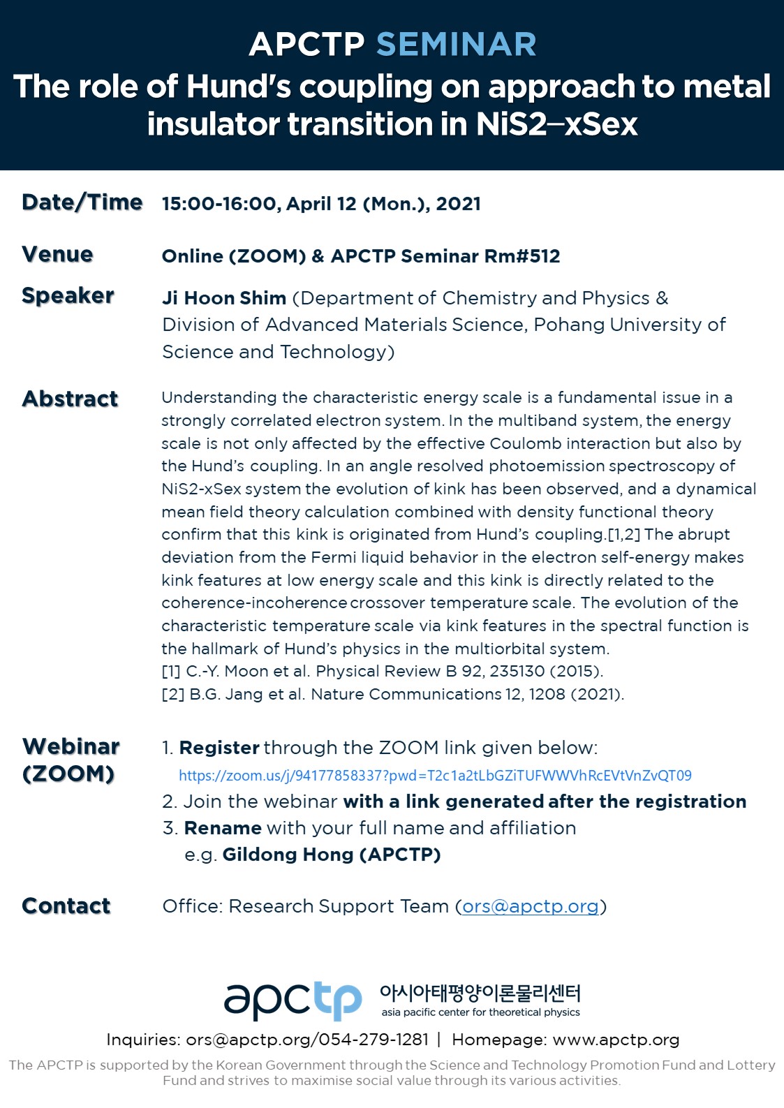 Place Online (ZOOM) & APCTP Seminar Rm#512