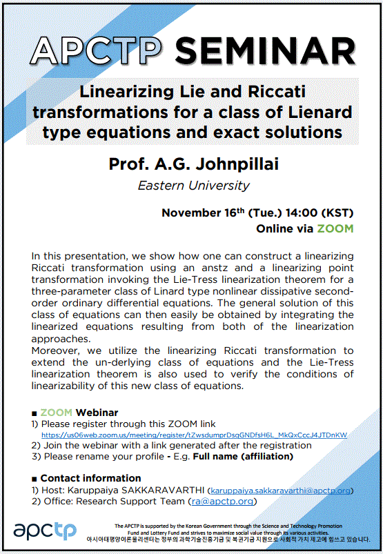 Poster Image Linearizing Lie and Riccati transformations for a class of Lienard type equations and exact solution