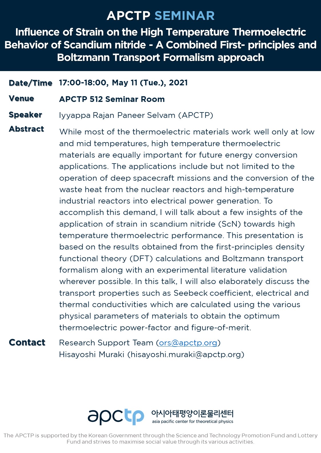 | Title | Influence of Strain on the High Temperature Thermoelectric Behavior of Scandium nitride - A Combined First- principles and Boltzmann Transport Formalism approach | ||||||