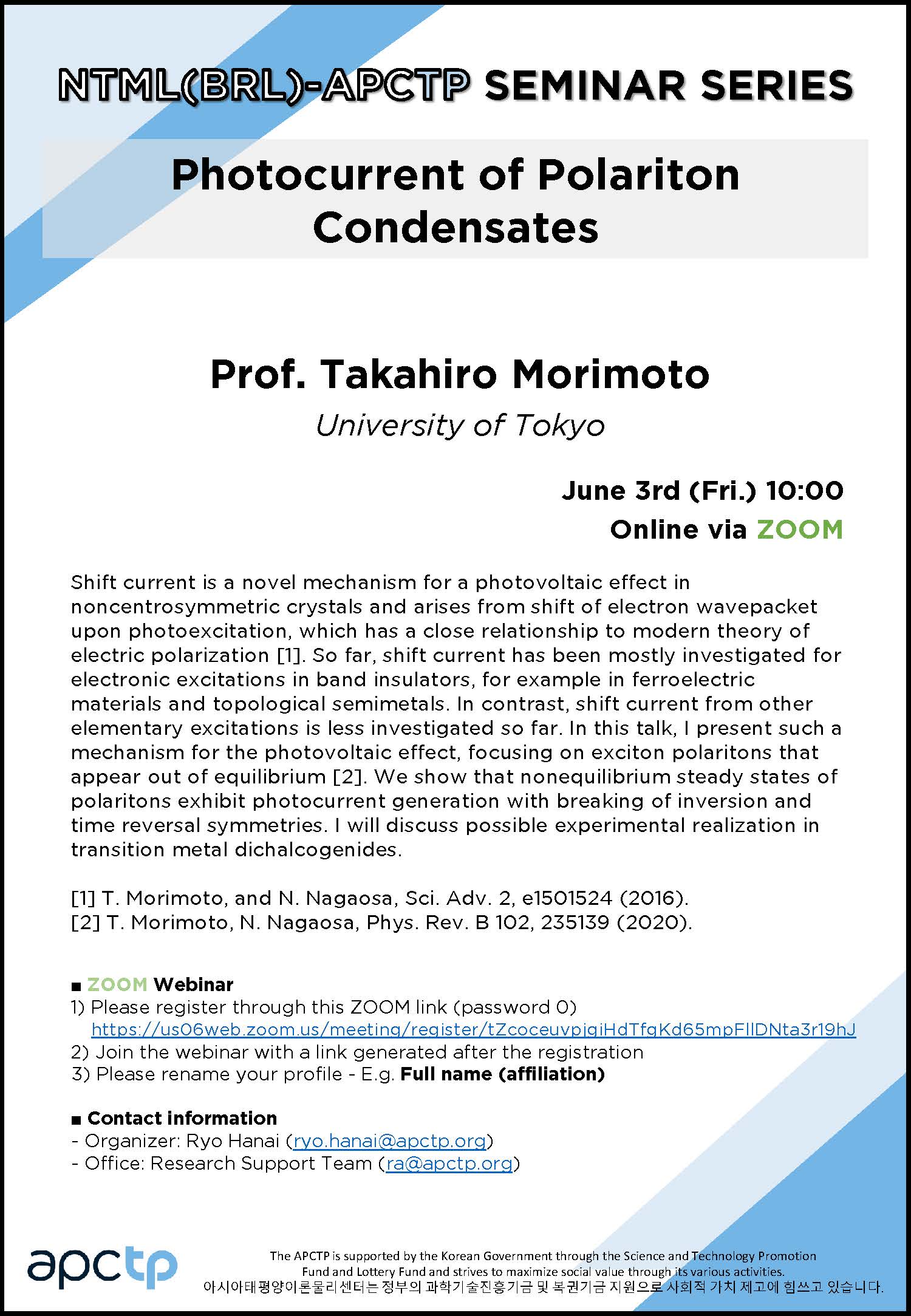 | Title | [JRG] NTML(BRL)-APCTP Seminar Series on Topological Matter Out of Equilibrium: Photocurrent of Polariton Condensates | ||||||