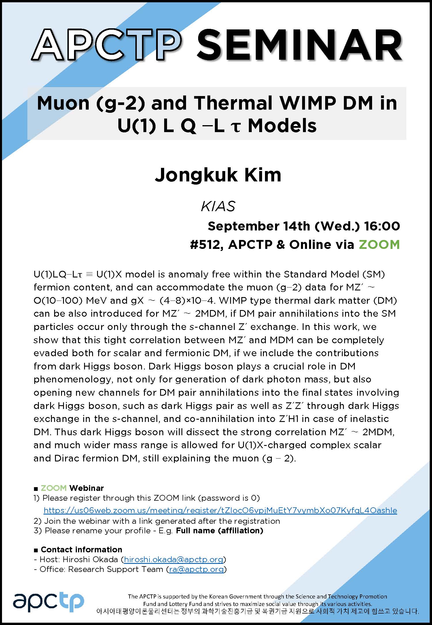 Title Muon (g-2) and Thermal WIMP DM in U(1) L Q-L τ Models