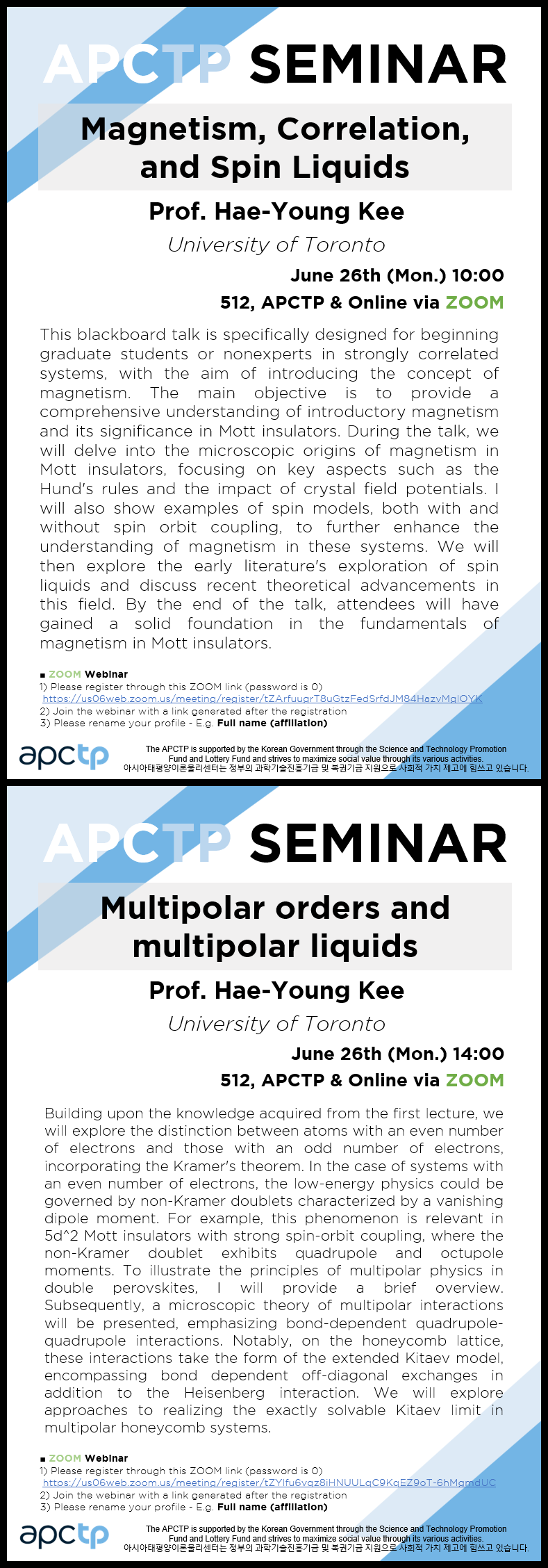 Place #512, APCTP & Online via Zoom