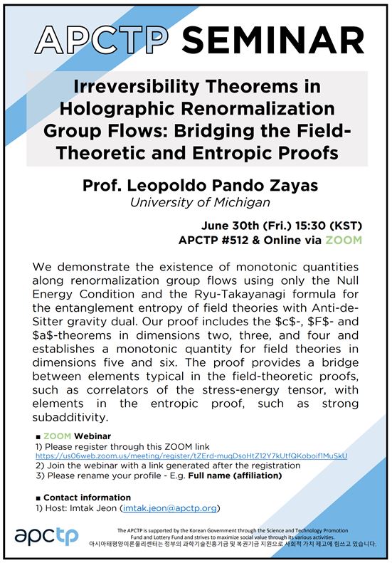 | Place | #512, APCTP & Online via Zoom | ||||||
