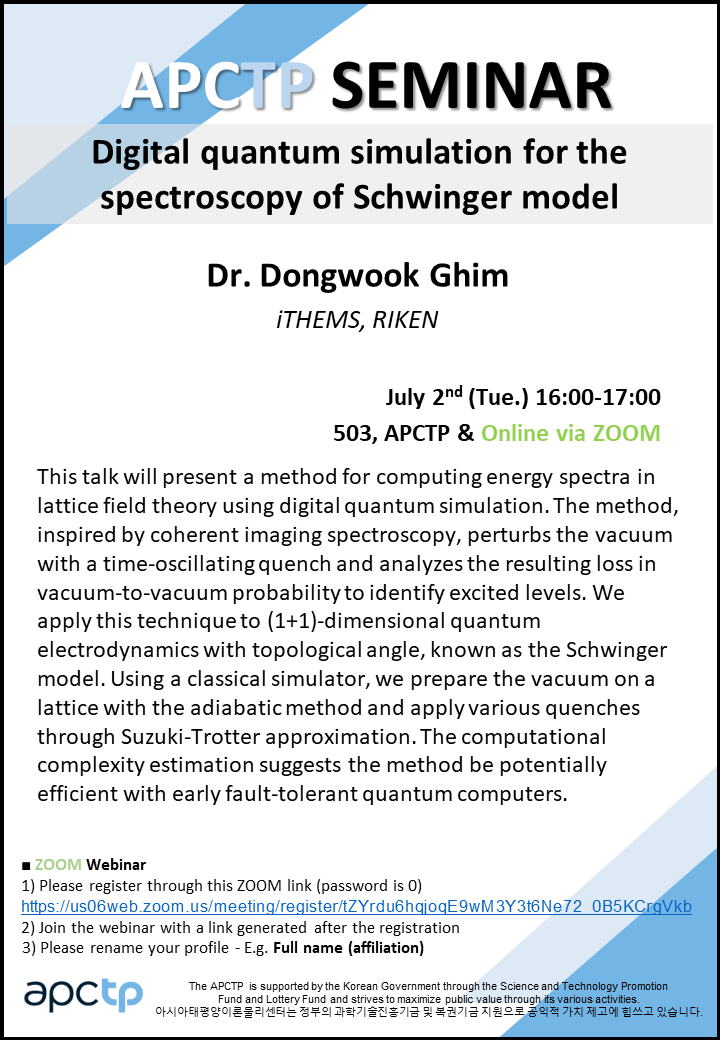 | Place | #503, APCTP & Online via ZOOM | ||||||