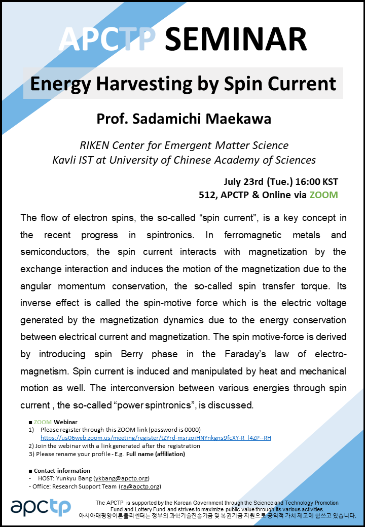 | Place | #512, APCTP & Online Via ZOOM | ||||||