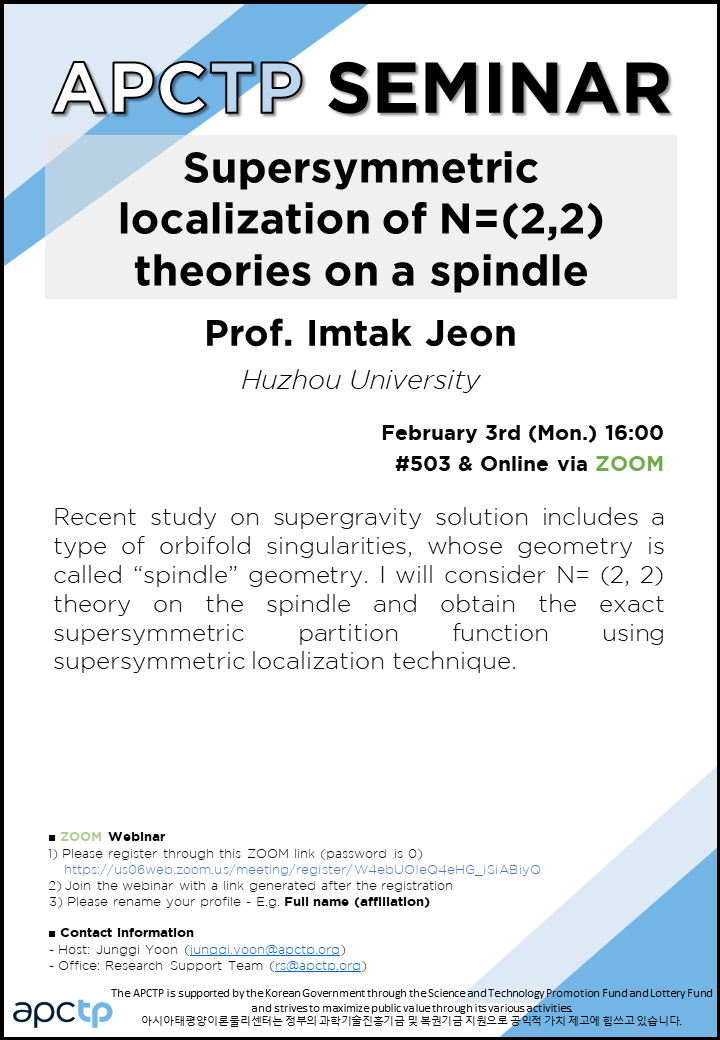 | Place | #503, APCTP & Online via Zoom | ||||||