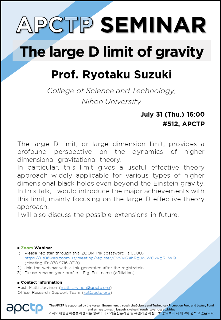 | Place | #512, APCTP & Online via Zoom | ||||||
