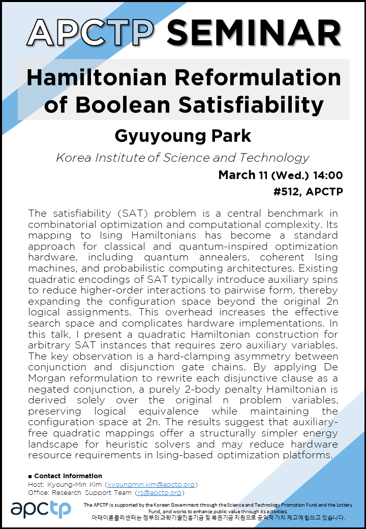 | Title | Hamiltonian Reformulation of Boolean Satisfiability | ||||||