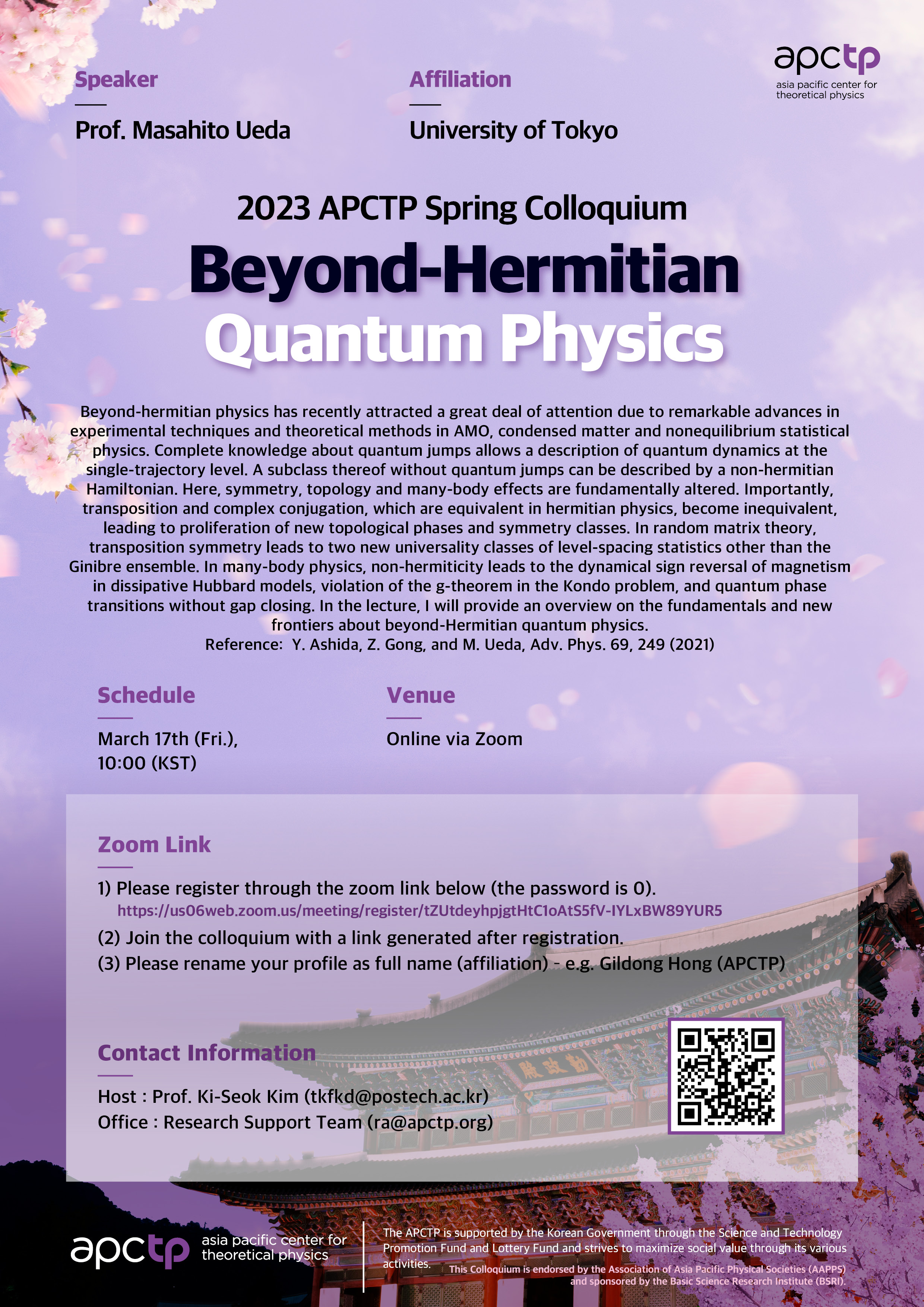 Seminars at IBS : Theoretical Physics of Complex Systems